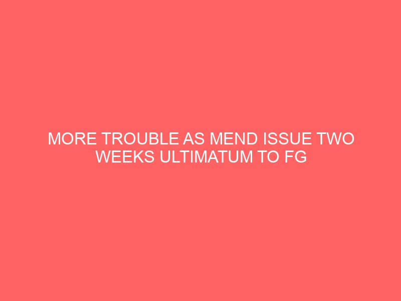 MORE TROUBLE AS MEND ISSUE TWO WEEKS ULTIMATUM TO FG