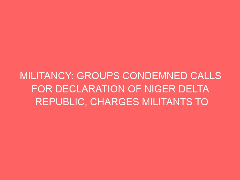 MILITANCY: GROUPS CONDEMNED CALLS FOR DECLARATION OF NIGER DELTA REPUBLIC, CHARGES MILITANTS TO EMBRACE FG DIALOGUE OPTION.