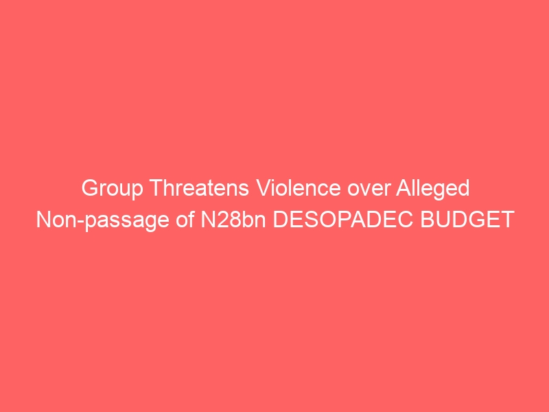 As the Federal Government is battling hard to curtail militancy in the Niger Delta, another round of crisis is again brewing in Delta State as a group, Delta Oil and Gas Stakeholders, threatens to resort to violence over the non-passage of the N28 billion budget of the state’s oil producing areas development commission (DESOPADEC).