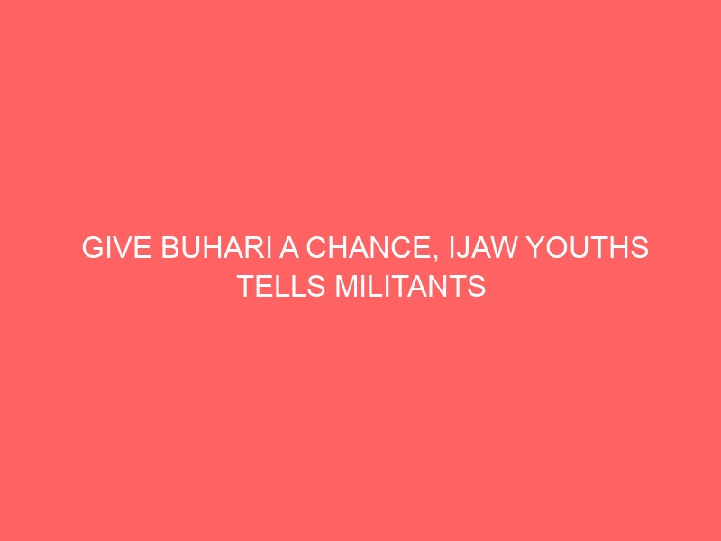 Ijaw youths in Niger Delta have on Wednesday, urged militants operating in the Niger Delta region to shield their swords and allow President Muhammadu Buhari to implement his developmental projects in the region.