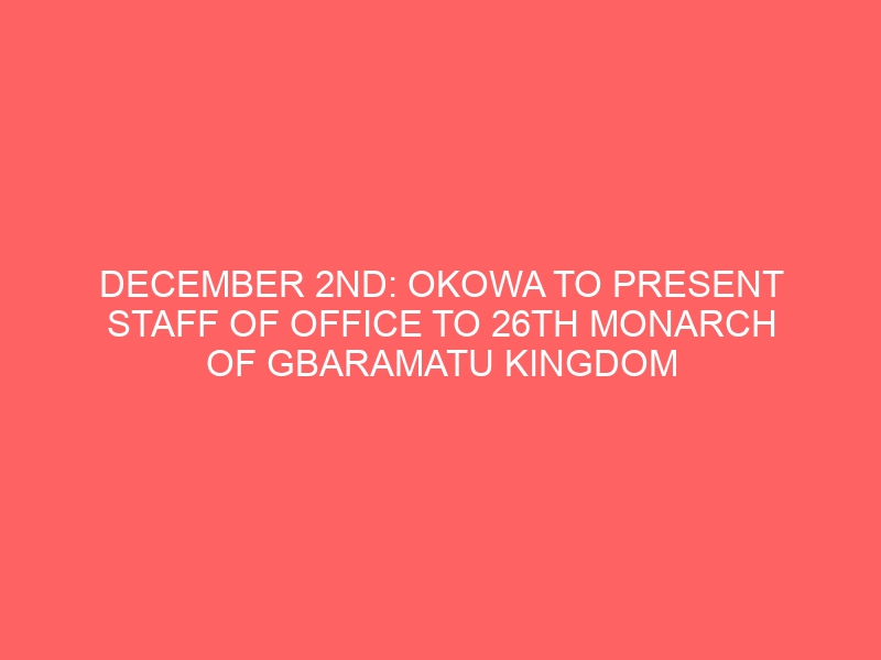 According to the source who disclosed this to Gbaramatu Voice Newspaper Yesterday that would not want his name to be mentioned in print stated that the Delta State Governor will be presenting the staff of office to the Agadagba of Gbaramatu Kingdom on December 2nd 2016.