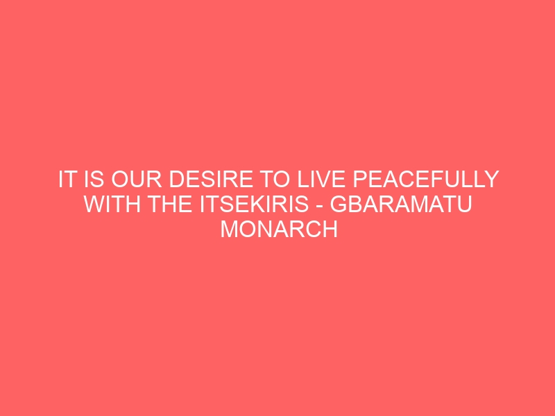 OPOROZA -The paramount ruler of Gbaramatu kingdom in Warri South West Local Government Area of Delta State, His Royal Majesty, Oboro Gbaraun II, Aketekpe Agadagba have expressed his desire to live peacefully with other ethnic nationalities in the Nigerian State especially with the Itsekiri ethnic nationality.
