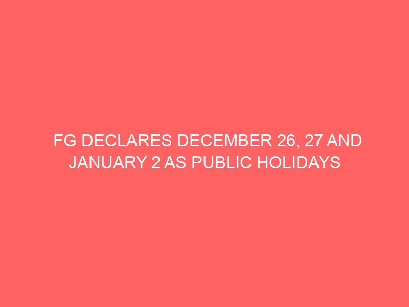 The Federal Government has declared Monday and Tuesday, December 26 & 27, 2016 and Monday, January 2, 2017 as public holidays to mark the Christmas, Boxing Day and New Year 2017 celebrations respectively.