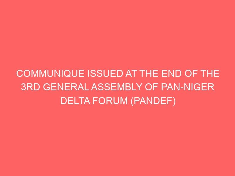 COMMUNIQUE ISSUED AT THE END OF THE 3RD GENERAL ASSEMBLY OF PAN-NIGER DELTA FORUM (PANDEF)