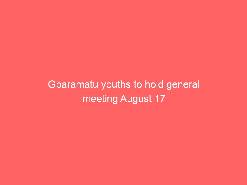 Gbaramatu Youth Council, GYC, to hold her General Meeting Thursday, August 17, 2017, by 11:00am.