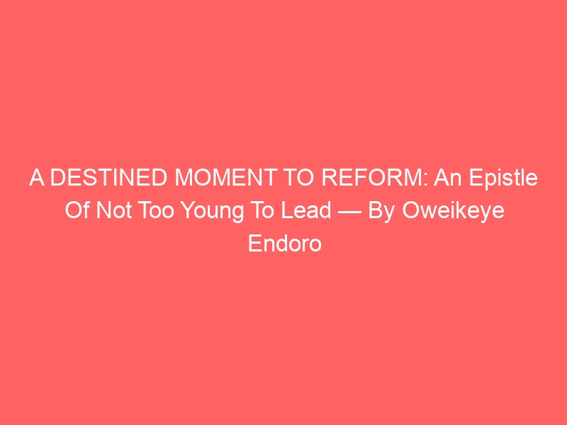 A DESTINED MOMENT TO REFORM: An Epistle Of Not Too Young To Lead — By Oweikeye Endoro