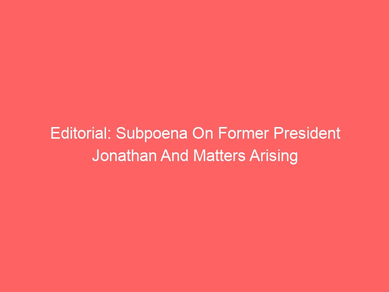 Editorial: Subpoena On Former President Jonathan And Matters Arising