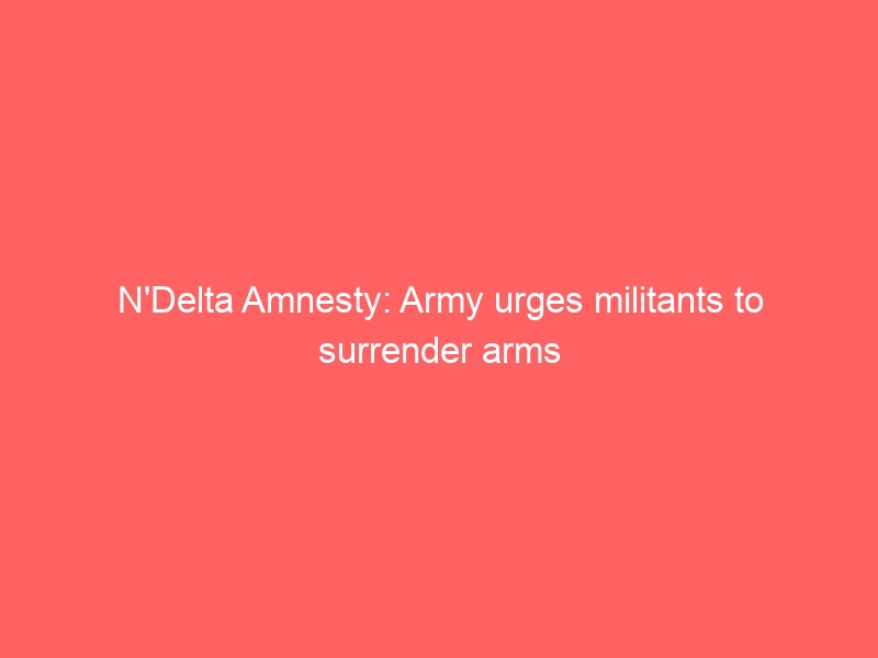 The Commander of the 32 Artillery Brigade of the Nigeria Army, Brigadier-General James Ataguba on Monday advised the militant youths in the Niger Delta area of Ondo State to surrender their arms and embrace the amnesty programme of the Ondo State and the Federal Governments.