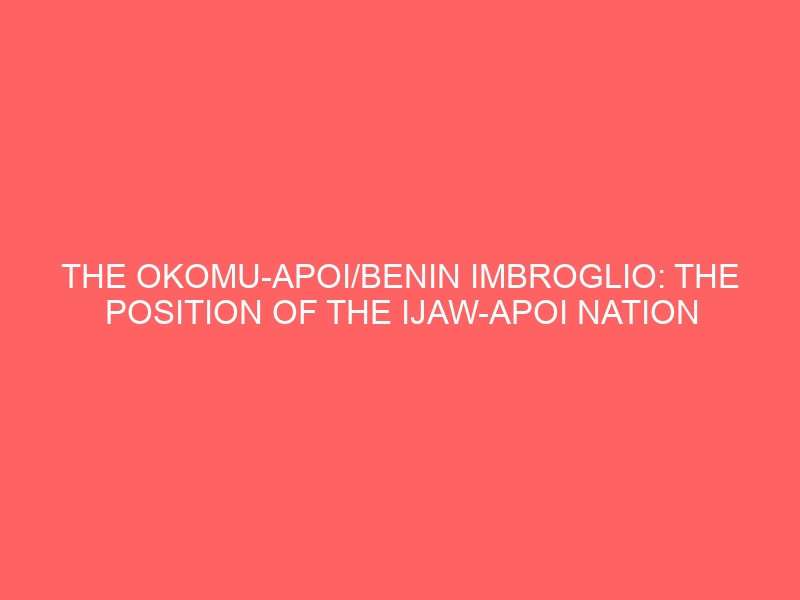 OKOMU AS PART OF THE AUTOCHTHONOUS IJAW-APOI PEOPLE AND TERRITORY: