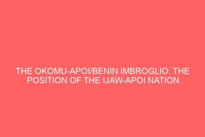 THE OKOMU-APOI/BENIN IMBROGLIO: THE POSITION OF THE IJAW-APOI NATION