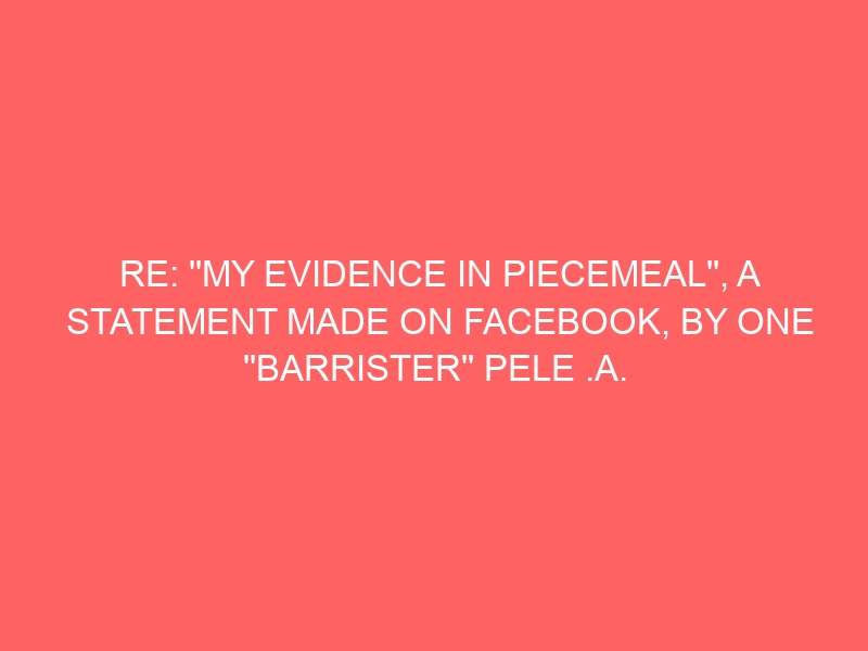 RE: ”MY EVIDENCE IN PIECEMEAL”, A STATEMENT MADE ON FACEBOOK, BY ONE ”BARRISTER” PELE .A. DEMEBIDE AGAINST GBARAMATUVOICE