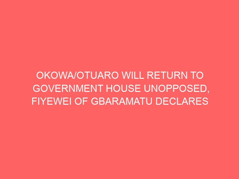 OKOWA/OTUARO WILL RETURN TO GOVERNMENT HOUSE UNOPPOSED, FIYEWEI OF GBARAMATU DECLARES