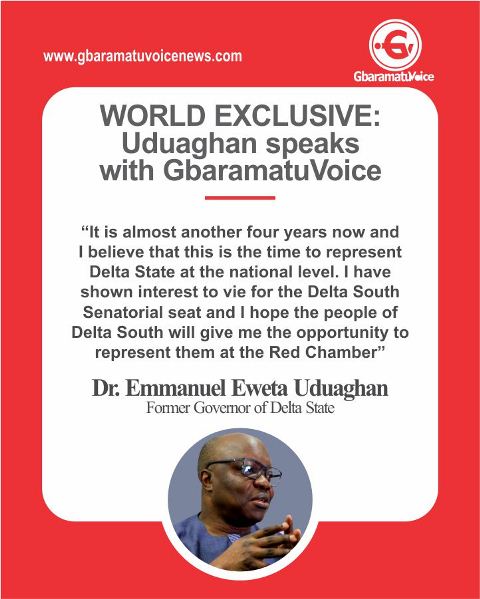 - First of all I thank the people of Delta State for their support and if you can recall I made an attempt to go to the Senate in 2015. But it got to a point where I had to concentrate on transition because that was a politically delicate period. Joggling transition with my own aspiration would have messed up the polity. I needed to ensure that the PDP was fully transited from one governor to another just like Chief James Ibori did in 2007. Delta State was marked red on the security watch list because there were so many crises. So, we ensured that we had a peaceful transition. We also ensured that we gave our then president (Dr. Goodluck Jonathan) our maximum vote and that was important to us. In Delta State, we contributed over 1.3million votes for him and there is no apology for that because he was our own. I am happy that I was able to achieve these things. It is almost another four years now and I believe that this is the time to represent Delta State at the national level. I have shown interest to vie for the Delta South Senatorial seat and I hope the people of Delta South will give me the opportunity to represent them at the Red Chamber. So, I am using this opportunity to tell them that I am contesting for the senate position. I will come to knock on their doors in due course.