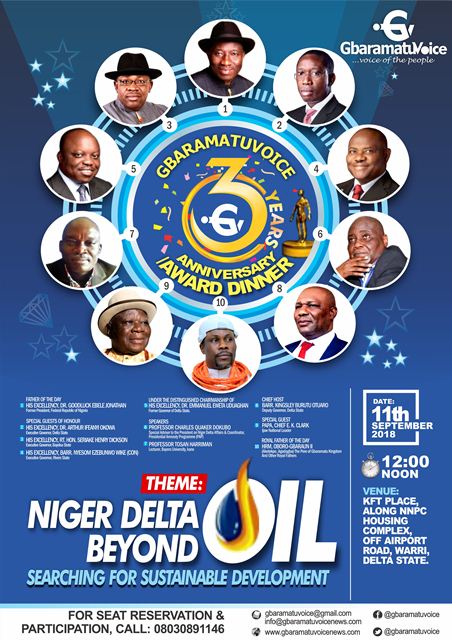 All is now set for the GbaramatuVoice third anniversary award/induction into the hall of fame scheduled for Tuesday, September 11th at the prestigious KFT Event Place located near the NNPC Housing Complex off Airport Road, Warri, Delta State.