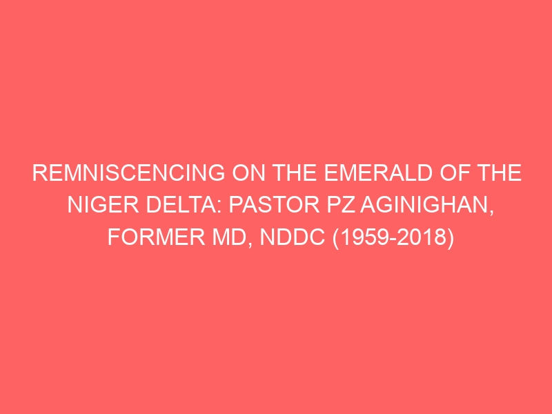 REMNISCENCING ON THE EMERALD OF THE NIGER DELTA: PASTOR PZ AGINIGHAN, FORMER MD, NDDC (1959-2018)