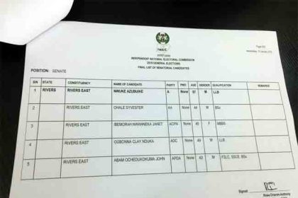 The Independent National Electoral Commission (INEC) has released the names of candidates…