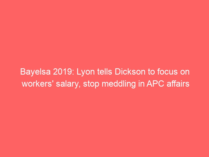 Bayelsa 2019: Lyon tells Dickson to focus on workers’ salary, stop meddling in APC affairs