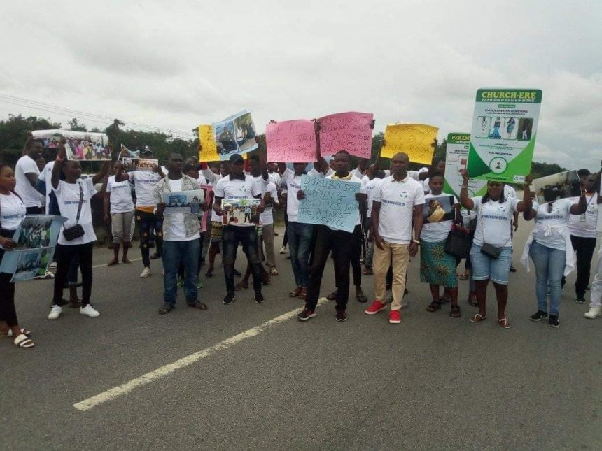 The delegates, who came out to protest, expressed their disapproval of the non-payment of their coordinator for the training programme they attended at Lagos for a duration of six months.