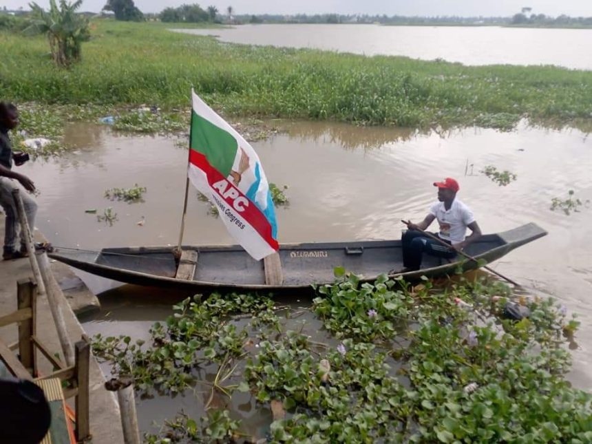 Timipa hoisted the flag of APC in the canoe and began the hand-pulling journey at about 9:30am on Tuesday withstanding rising current and got to the Ox-bow lake at about 4pm on Wednesday.