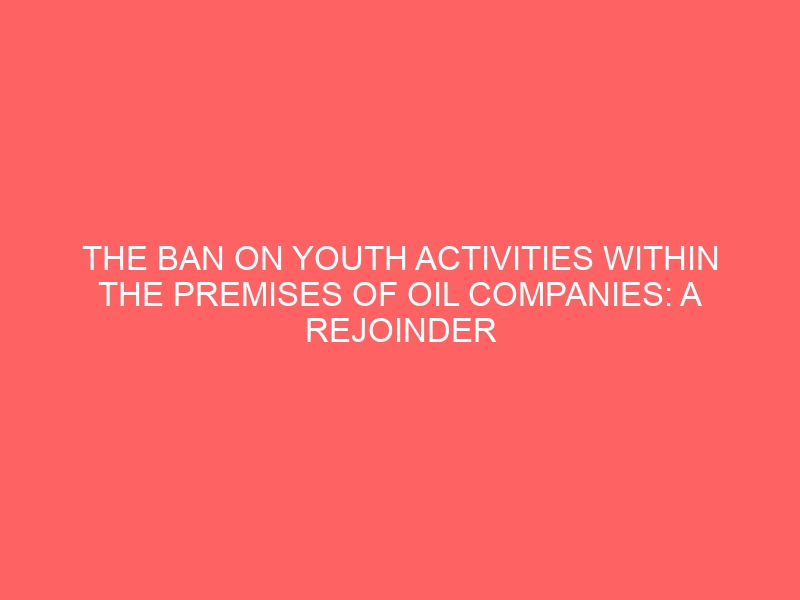 THE BAN ON YOUTH ACTIVITIES WITHIN THE PREMISES OF OIL COMPANIES: A REJOINDER