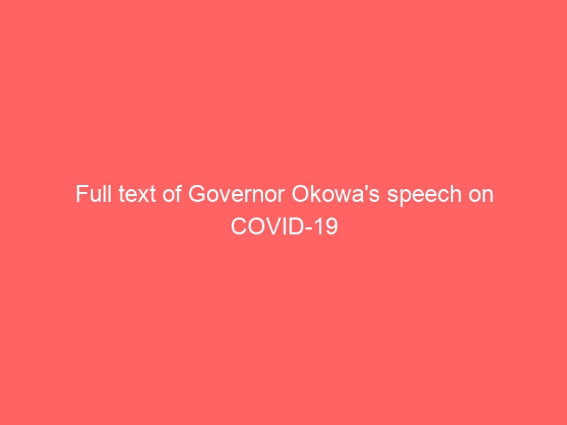 STATE BROADCAST BY HIS EXCELLENCY, SENATOR, DR IFEANYI OKOWA, GOVERNOR OF DELTA STATE, ON THE STATE OF THE FIGHT AGAINST THE CORONAVIRUS PANDEMIC ON TUESDAY, APRIL 28, 2019.