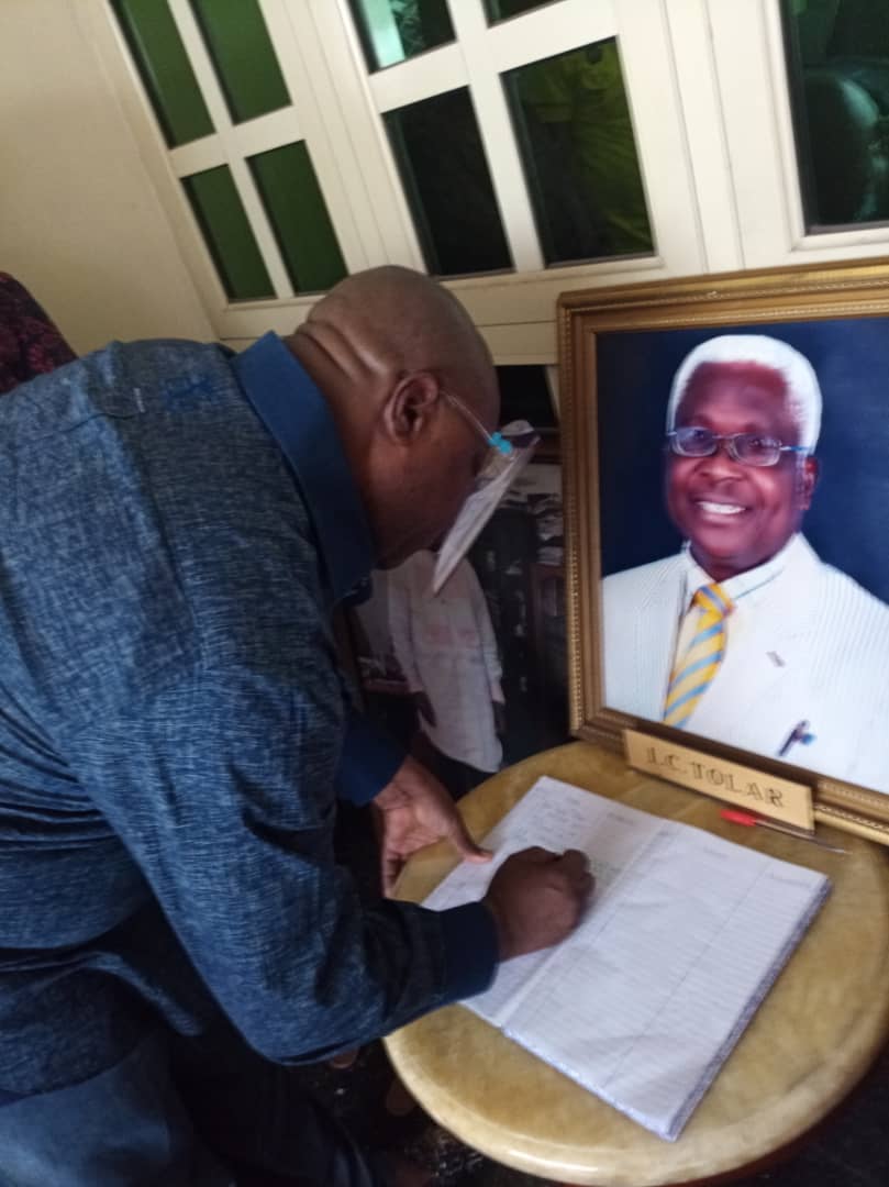 Otuaro signing the condolence register for Dr. I. C. Tolar