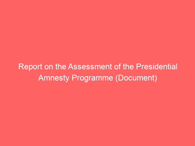 Report on the Assessment of the Presidential Amnesty Programme (Document)