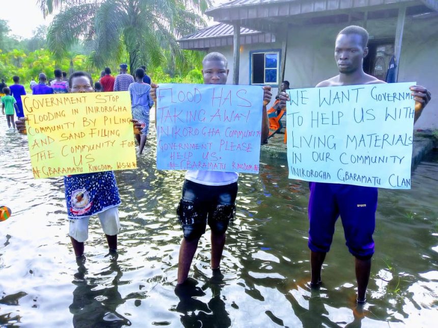 The people of Inikorogha community in Gbaramatu kingdom, Warri South West Local Government Area of Delta State have cried to the state government to save them from the flood in the community.