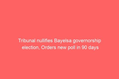 The Bayelsa State Gubernatorial Petition Tribunal has nullified the election of Governor…
