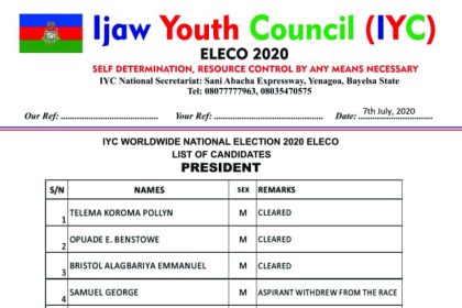 By Ebi Perekeme The Ijaw Youth Council, IYC, Election Committee, has released…