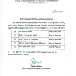 Those nominated by the governor for appointment as commissioners are; Mr. Charles Aniagwu; Dr. Barry Gbe; Mr. Ifeanyi Egwuyenga; Chief Arthur Akpowowo; Chief Festus Ochonogor.