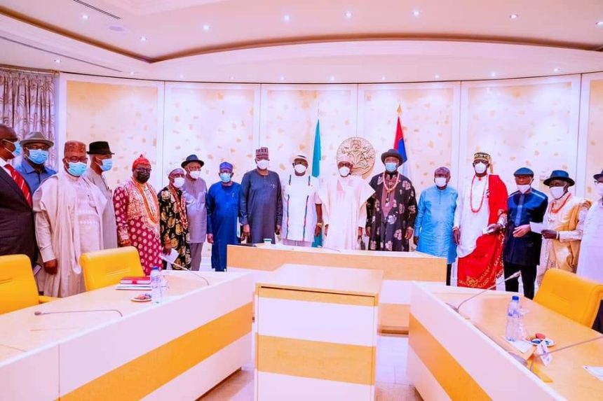 President Muhammadu Buhari today, June 24, 2021 met with the national executive and leaders of the Ijaw Nation Congress, INC, at the Presidential Villa, Abuja.