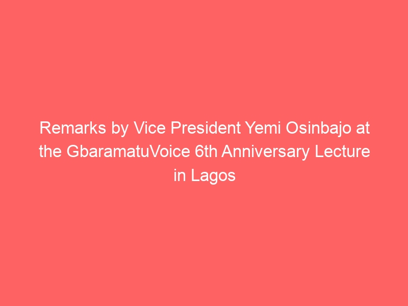 Remarks by Vice President Yemi Osinbajo at the GbaramatuVoice 6th Anniversary Lecture in Lagos (Full Text)