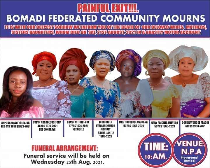 Sorrow, tears in Bomadi as 7 female wedding guests who died in Delta road accident set for burial