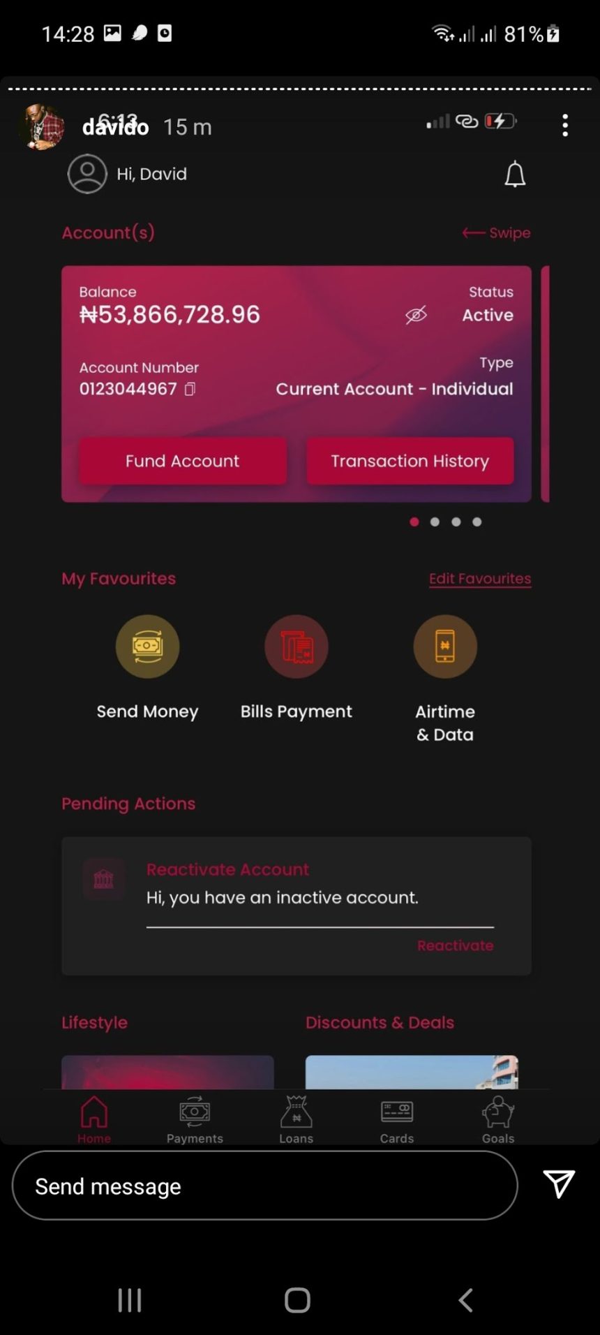 Davido revealed that he created the account today with no money in it and in 7hours he has accumulated almost 60million Naira.