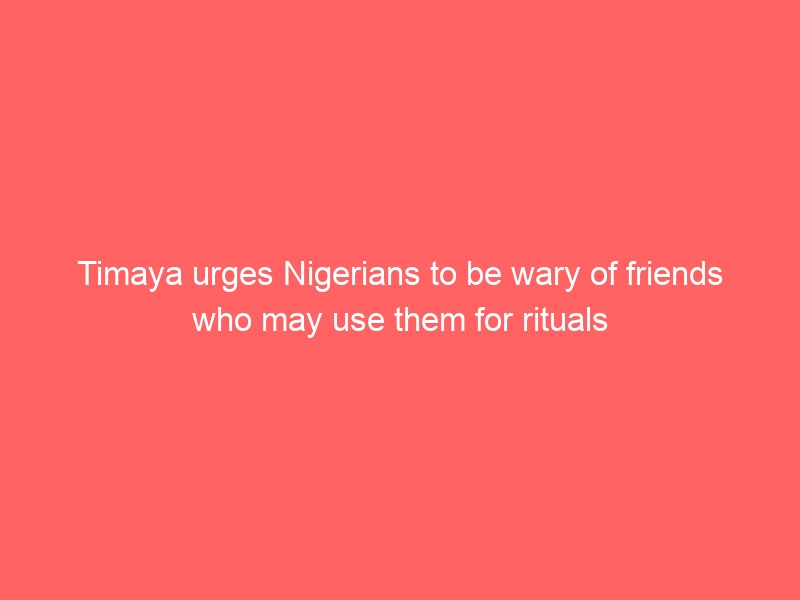Popular Nigerian singer, Timaya, has urged Nigerians to be wary of the evil in the society as even their best friends could use them for money rituals.