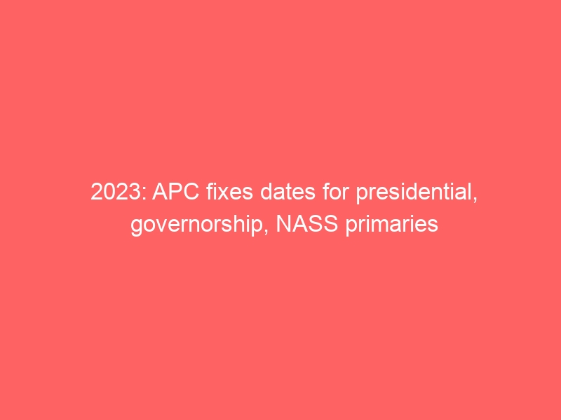 The All Progressives Congress (APC) has fixed May 30th, 2022 for the party’s presidential primary. It also proposed dates for the governorship, House of Assembly, and National Assembly primaries.