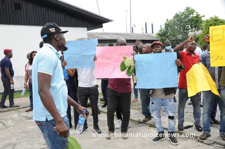 The protesters, who are from various contractors including workers of Tekedor Nig Ltd, NOFS/CESL, Arere and Brothers Nig Ent., Mabsolo Nig Ent., Goodness Ventures Nig Ent., Patley Nig Ent., Ebibo Nig Ent and IMPAC claimed that that they haven’t received their salaries for over 8 months by the management.