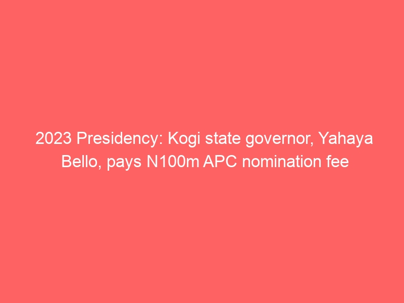 Governor Yahaya Bello of Kogi State on Tuesday paid N100 million for the purchase of the forms to contest the 2023 Presidency under the platform of the All Progressives Congress.