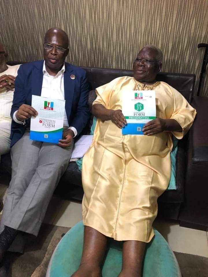 The Honourable Minister of State for Petroleum Resources, Chief Timipre Sylva, on Tuesday, presented his Expression of Interest and Nomination forms to contest for the 2023 presidency to Ijaw national leader and elder statesman, Chief Edwin Kiagbodo Clark, at his residence in Abuja, for his blessing and support.