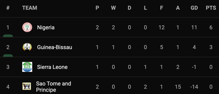 This is how the Group A table looks currently with Sierra Leone-Guinea-Bissau set to be played later this evening.
