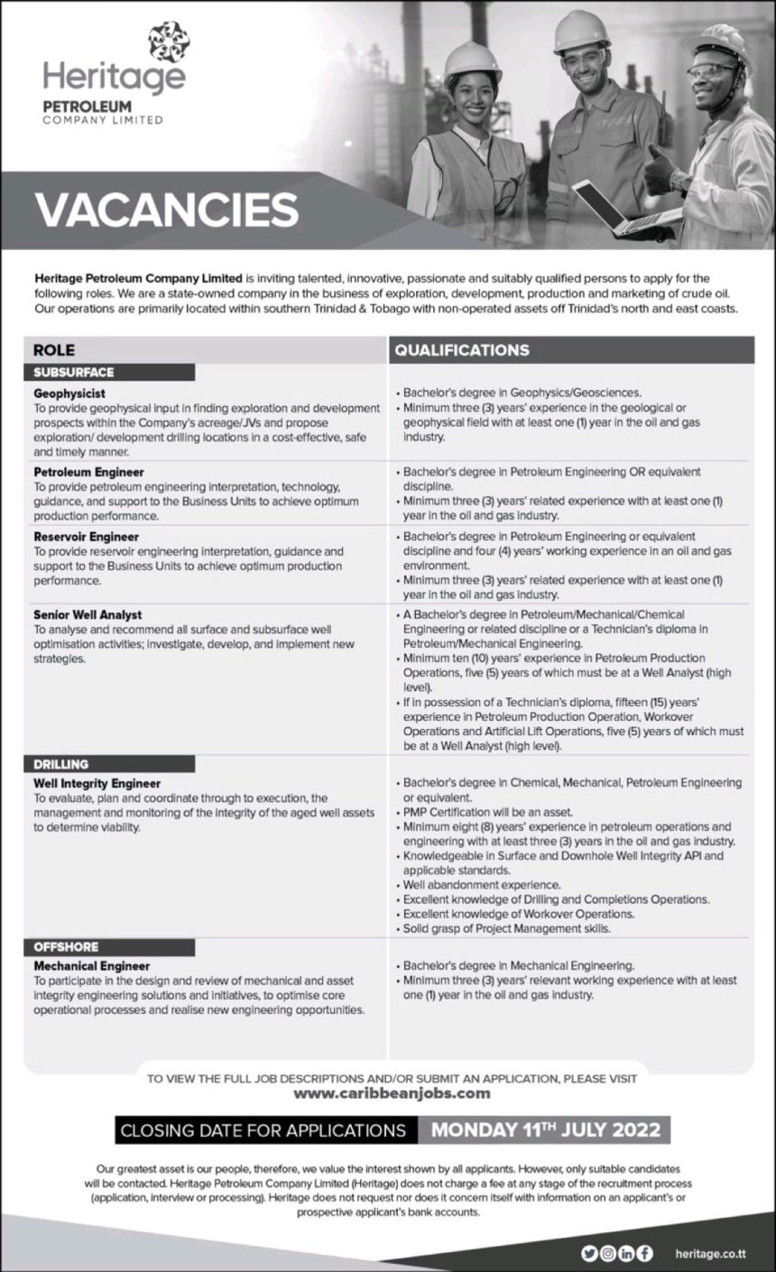 Job AlertsOil & GasUrgent job vacancies at Heritage Petroleum Company Limited Last updated: July 8, 2022 7:14 am gbaramatuvoice Share 0 Min Read SHARE Job Vacancies at Heritage Petroleum Company LimitedSee poster below to apply: MARGINALIZATION: OGULAGHA YOUTHS TO SHUTDOWN SHELL FLOW STATIONS PETROLEUM INDUSTRY ACT: Host communities present critical areas to senate for amendment JOB ALERT: VACANCIES AT CENTER FOR PEACE AND ENVIRONMENTAL JUSTICE (CEPEJ) $11 million lost to crude oil theft, pipeline vandalism, daily – NEITI Delta Ijaw community sues Shell over ownership of oil wells in BurutuSign Up For Daily NewsletterBe keep up! Get the latest breaking news delivered straight to your inbox.By signing up, you agree to our Terms of Use and acknowledge the data practices in our Privacy Policy. You may unsubscribe at any time. Share This Article Facebook Copy Link Print Share Previous Article New Niger Delta Minister, Umana Okon Umana, vows to make a difference Next Article I will pay tithes till I die – Pastor Ibiyeomie reacts to Creflo Dollar Stay Connected235.3kFollowersLike69.1kFollowersFollow11.6kFollowersPin56.4kFollowersFollow136kSubscribersSubscribe4.4kFollowersFollow - Advertisement -Latest News Nigerian Army to Recruit 24,000 Soldiers Amid Rising Security Challenges News November 19, 2025 National Security at Risk: Buratai Condemns Wike’s Public Attack on Military Officer News November 11, 2025 IYC to INEC Chairman: Suspend Voter Registration in Warri Federal Until Ward Delineation Is Gazetted Current News Latest News October 30, 2025 DIRI vs EWHRUDJAKPO: Court Stops Moves to Impeach Bayelsa Deputy Governor Latest News October 30, 2025