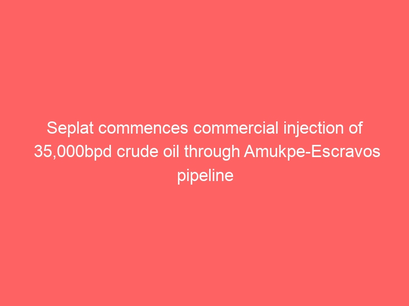 Seplat Energy Plc has commenced the commercial injection of crude oil through the new Amukpe-Escravos Pipeline.