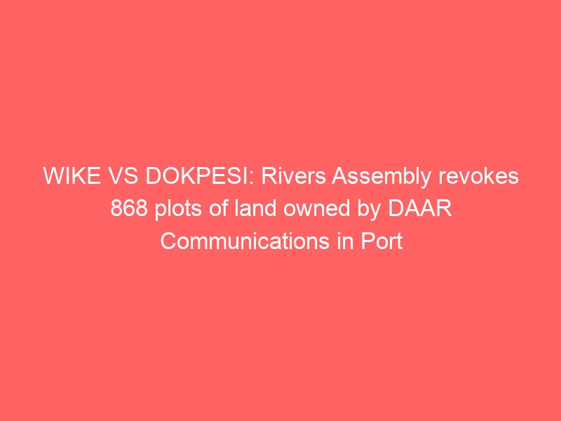 WIKE VS DOKPESI: Rivers Assembly revokes 868 plots of land owned by DAAR Communications in Port Harcourt