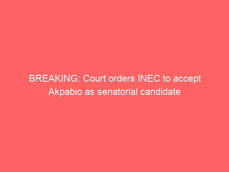 Federal High Court in Abuja has ordered the Independent National Electoral Commission to recognise the former Minister of Niger Delta, Godswill Akpabio, as an All Progressives Congress Senatorial candidate.