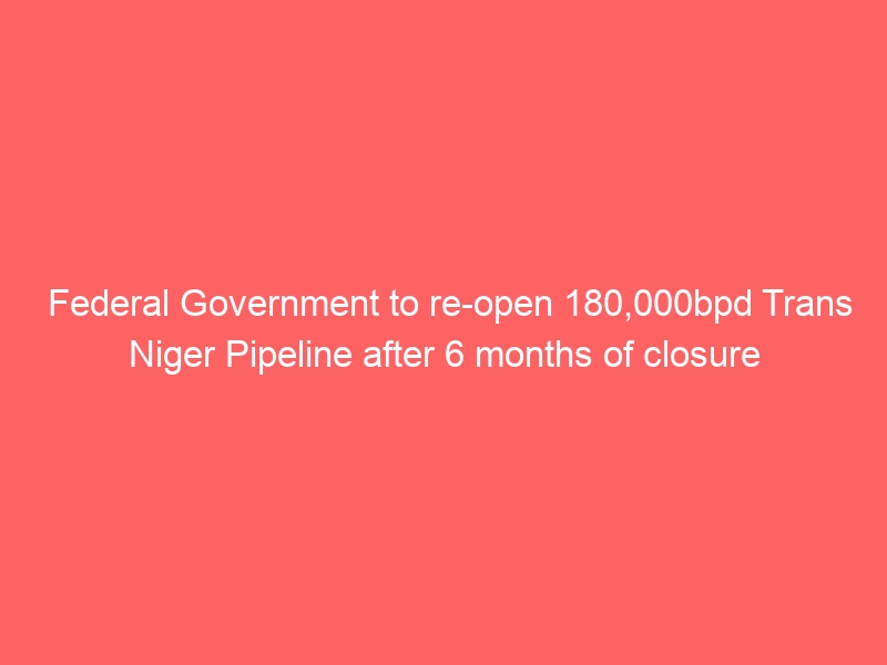 Federal Government to re-open 180,000bpd Trans Niger Pipeline after 6 months of closure