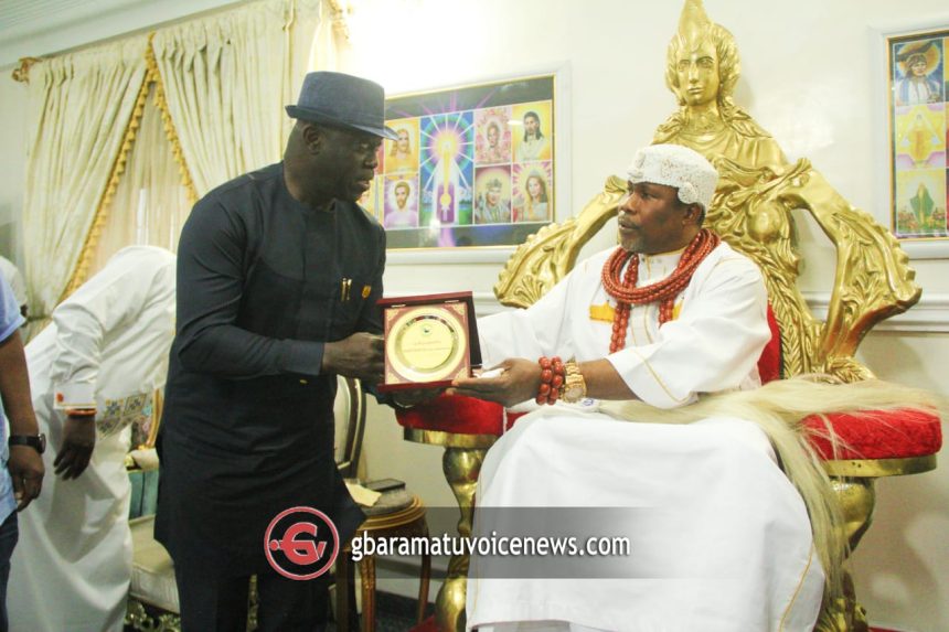 GbaramatuVoice reports that Ndiomu made this disclosure when he paid a courtesy call to His Royal Majesty, Oboro-Gbaraun II, Aketekpe, Agadagba, Pere of Gbaramatu Kingdom at his palace in Oporoza town, Delta state.