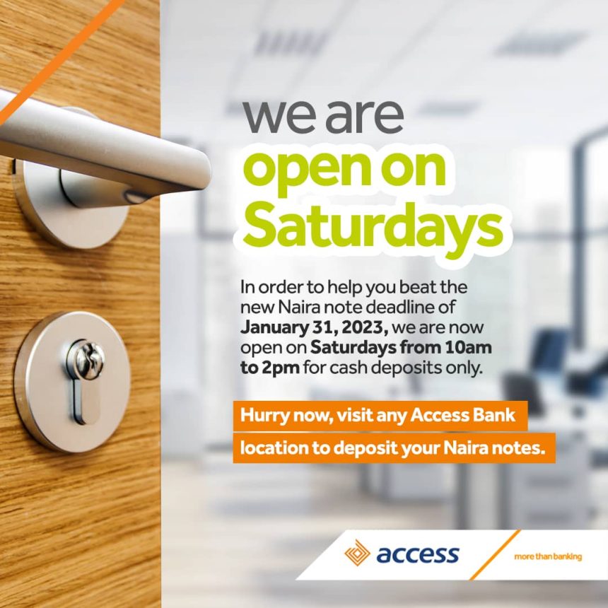 NEW NAIRA NOTES: Access Bank provides alternative channels for cash deposits, introduces Saturday banking