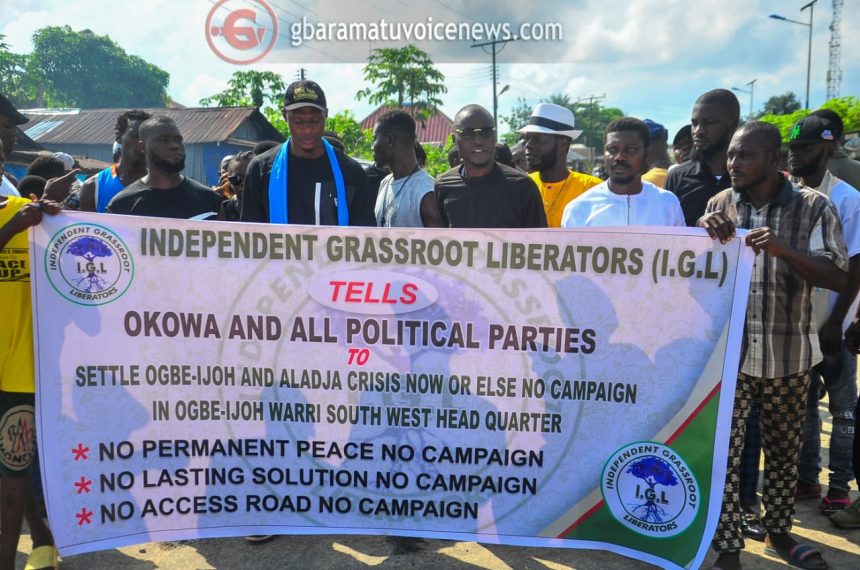 A political pressure group in Delta state, the Independent Grassroots Liberators (IGL), has asked the Senator Ifeanyi Okowa’s led Delta State Government to immediately settle the communal disputes in the warring communities of Ogbe-Ijoh and Aladja or else, they should not contemplate coming to the area for political campaign or other political gains in the forthcoming general election in the country slated for February 2023.