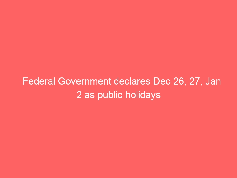 Federal Government declares Dec 26, 27, Jan 2 as public holidays
